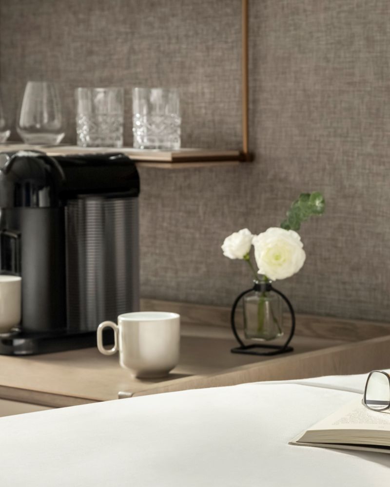Suite 2 chambres avec 1 lit King dans la chambre principale et 2 lits jumeaux dans la 2e chambre. Grand espace à vivre avec canapé-lit. 2 salles de bain + cabinet de toilette. Petit déjeuner, parking et produits d'accueil inclus. 83 m².