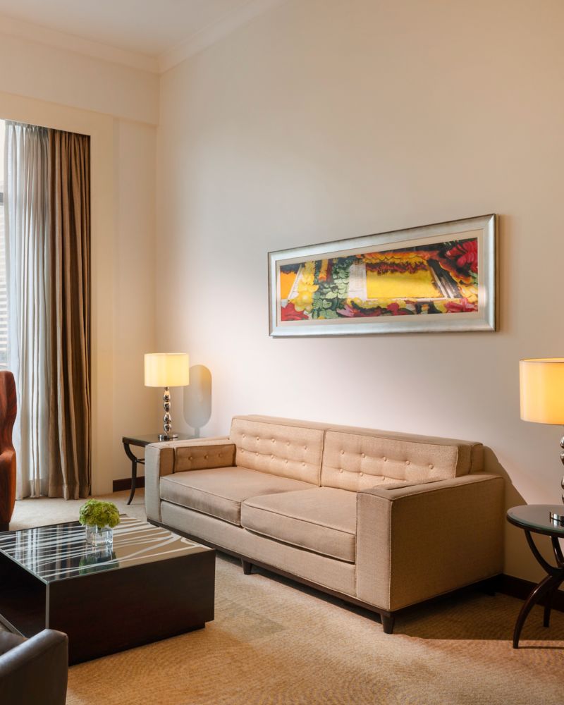 Ideal for families or business travelers seeking a luxurious home away from home with 80 sqm of elegant space. Separate living, dining, and bedroom areas cater to both productivity and relaxation. Floor-to-ceiling windows bathe the suite in natural light and showcase breathtaking city views. Enjoy peace and quiet in secluded corners.
