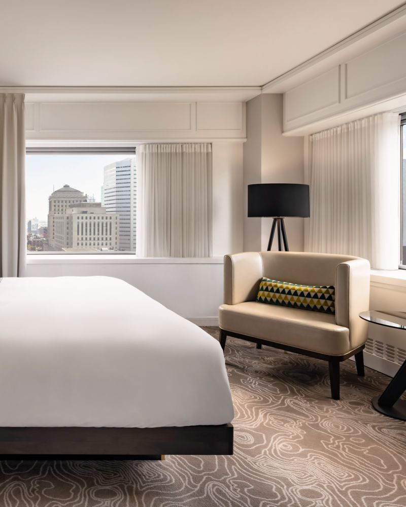 Admirez l'impressionnante vue sur la Cathédrale Marie-Reine-du-Monde ou l'installation artistique, L'Anneau. Réservez une chambre communicante Fairmont King avec vue pour un séjour en famille ou une escapade en groupe