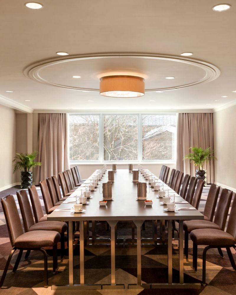 La salle Rue Sainte-Catherine dispose de cloisons amovibles, lui permettant d’être reliée avec d'autres salles de l'aile Mansfield. Surplombant la rue Mansfield et la cathédrale emblématique Marie-Reine-du-Monde, cet espace accueillant est baigné de lumière naturelle, idéal pour des réunions productives, des ateliers ou des séances de brainstorming.