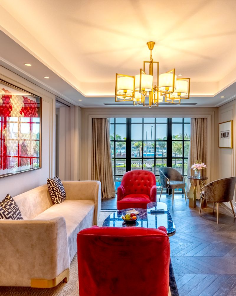 Revel in the Royal Suite's ultimate luxury with Gold Lounge access, a private Jacuzzi, expansive interiors, a double bed, and dedicated Fairmont Butler Service. Enjoy complimentary transport in a perfect fusion of opulence and sophistication.