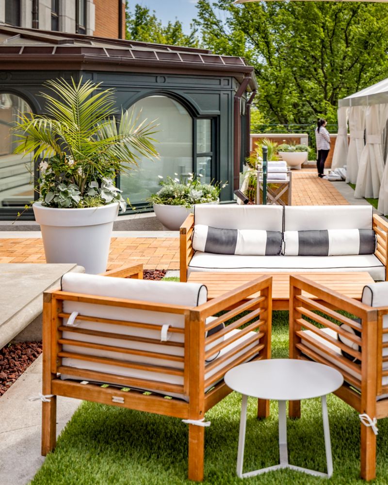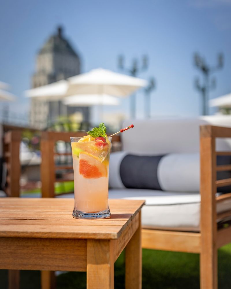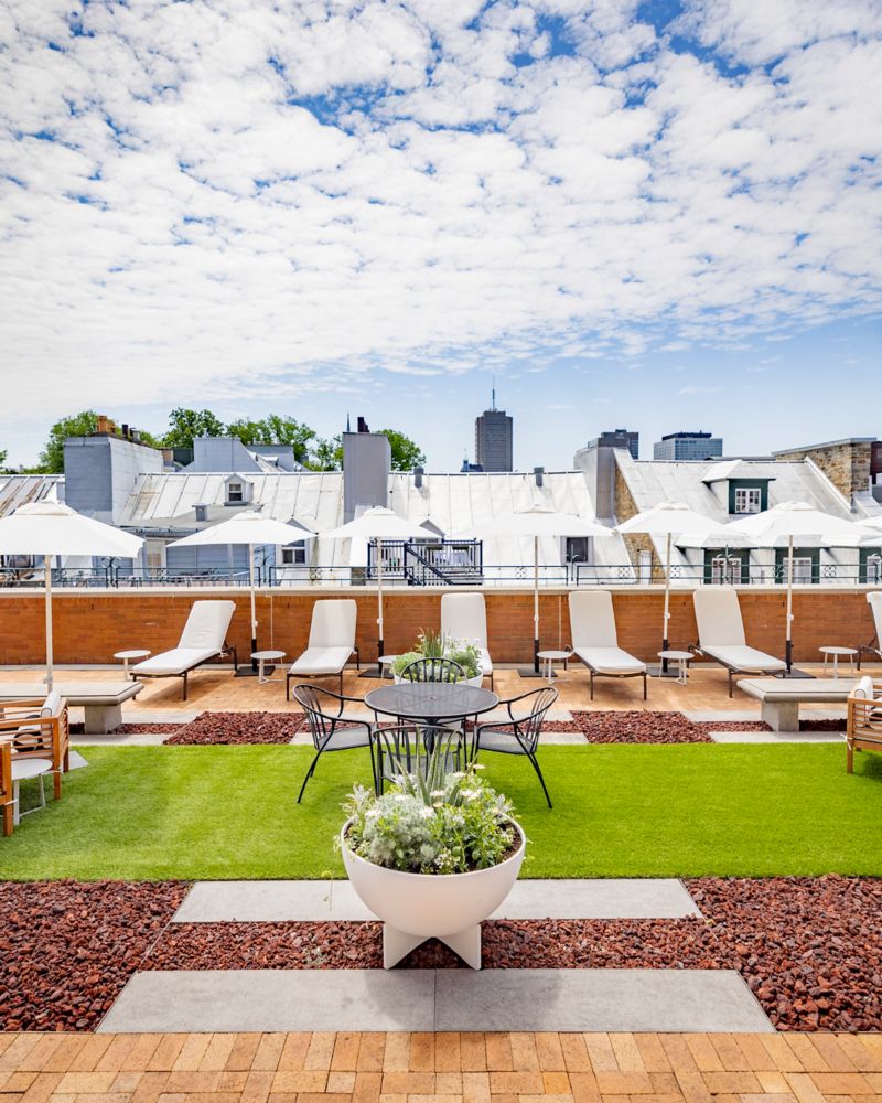 Unique à Québec, notre terrasse extérieure sur le toit est un incontournable.