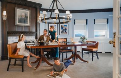 La suite Van Horne est un hébergement de choix au décor somptueux, composé d'une chambre principale, d'un salon, d'une grande salle à manger et d'une kitchenette séparée. Cette suite est dotée d'un cabinet de toilette et d'une luxueuse salle de bains en marbre avec une douche. Le salon offre une vue magnifique sur le fleuve Saint-Laurent.