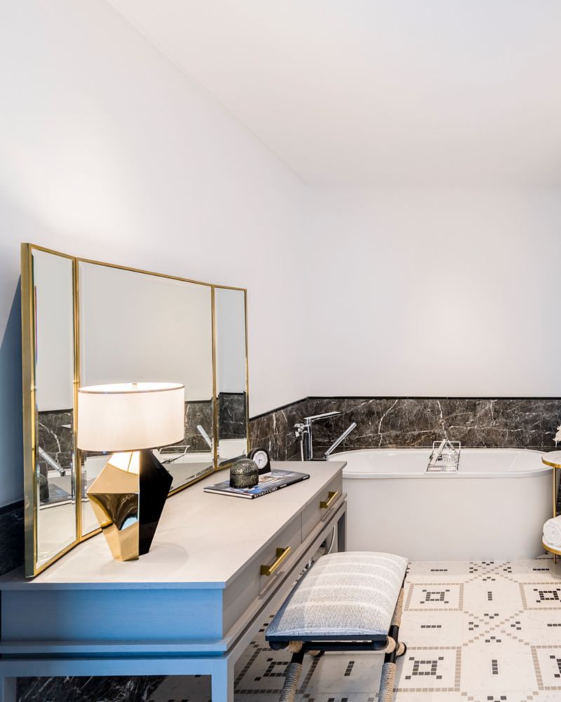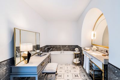 Avec sa salle de bains dotée d’une baignoire, d’une douche à effet pluie et d’accessoires de toilettes luxueux, idéale pour se détendre à deux après une journée d’exploration, notre chambre sera l’écrin de précieux souvenirs en compagnie de votre moitié.