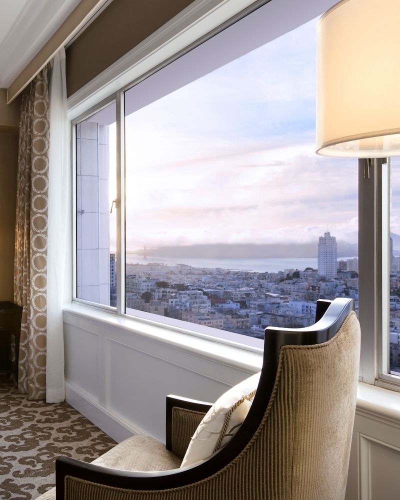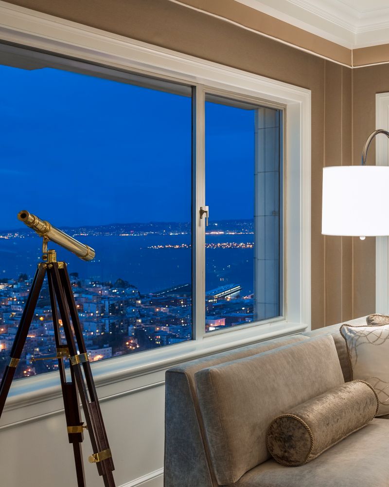 Contemporary in design, these suites on floors 12-23 offer spectacular panoramic views of San Francisco and the Bay. Equipped with telescopes to capture incredible views, these luxurious suites include a king bedroom, a parlor with double sofabed and large marble bathrooms. Connecting rooms available based on availability.