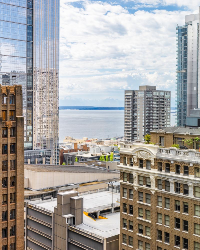 Discover the charm of Seattle in this stylish room featuring bay views on a top floor, a cozy sitting area, spacious closets, large work desk, marble bathroom, windows that open, and a Nespresso machine—ideal for both work and play.
