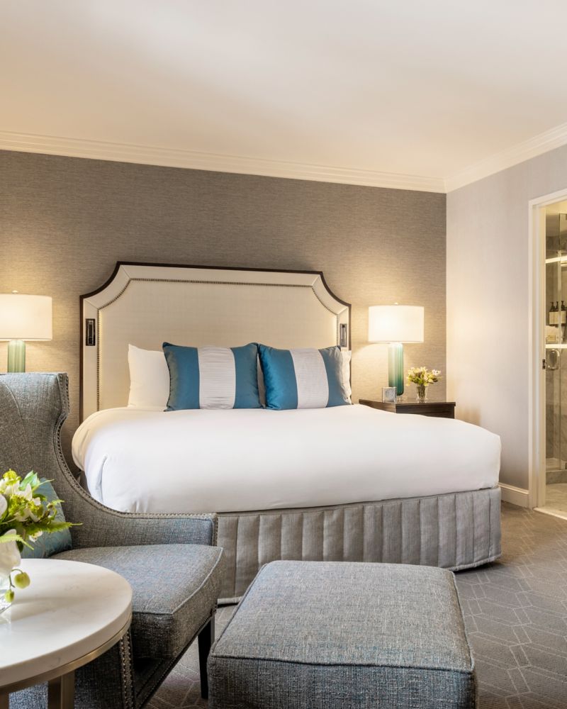Located on the corner of the building, these rooms offer more space, and bay views as well as an additional window providing more natural light. These rooms feature spacious en-suite marble bathrooms, intimate sitting areas and workspace.