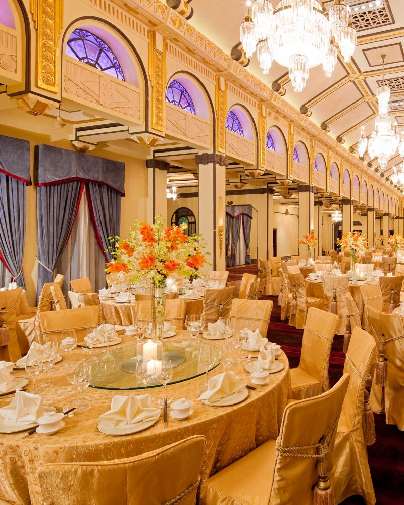 The Peace Hall is the famous ballroom, and over the decades has been the scene for some most lavish parties. It is known as "Golden Hall" for its British palace style, and is overshadowed by a vaulted ceiling of over 6 meters in height, with striking moon-hole windows on both sides. The floor is the original famed sprung white maple dance floor, now stunningly refurnished and brought back to life.