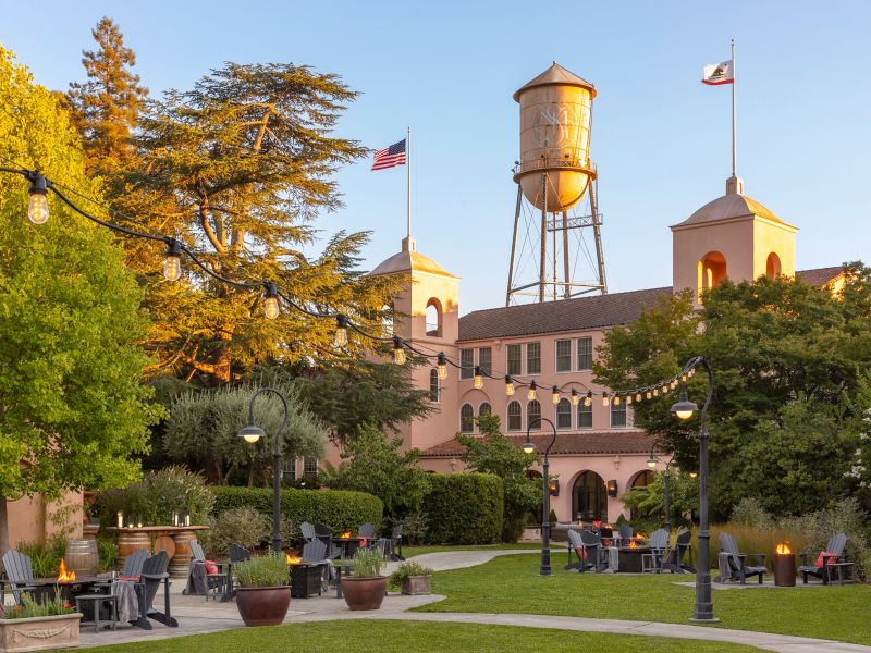 Front lawn of Fairmont Sonoma Mission Inn & Spa at sundown
