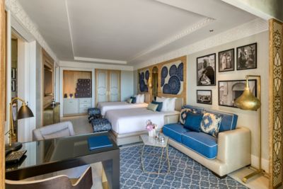 Les chambres Deluxe spacieuses de l’établissement Fairmont Tazi Palace Tangier offrent une vue spectaculaire sur une forêt paisible ou l’environnement splendide de Tanger.