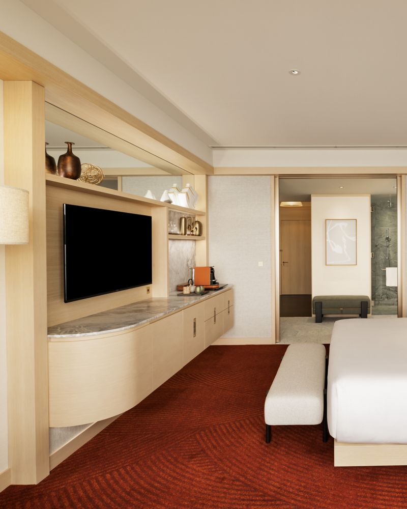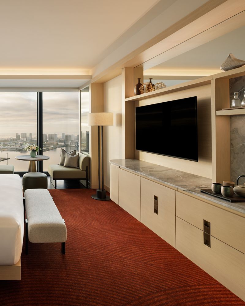 Wake up to the majestic view of Tokyo Bay. The room features an elegantly appointed bathroom with Le Labo, Marshall speaker and a Nespresso Machine to set the perfect ambiance for your stay. Up to 2 adults and 1 child (11 and under).