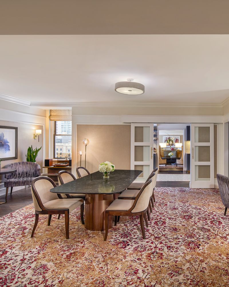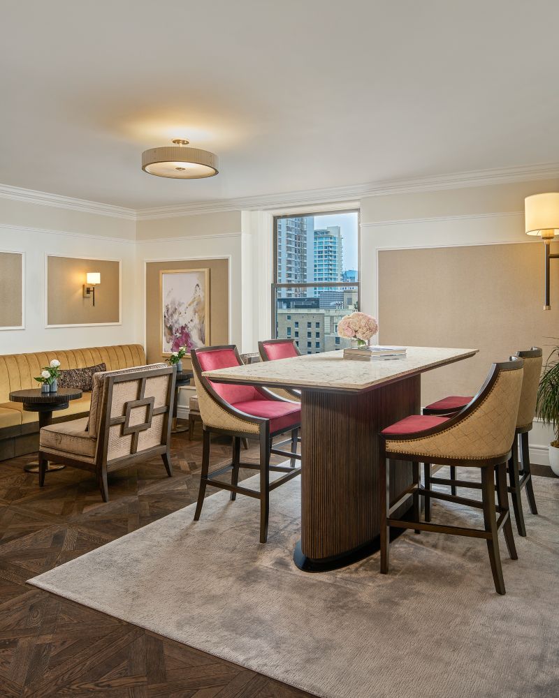 Spacieuse et luxueuse, avec une palette de couleurs saturées et des finitions élégantes : une expérience de luxe ultime. Salon séparé, cuisine de service, table à manger et salon. Accès au Fairmont Gold.