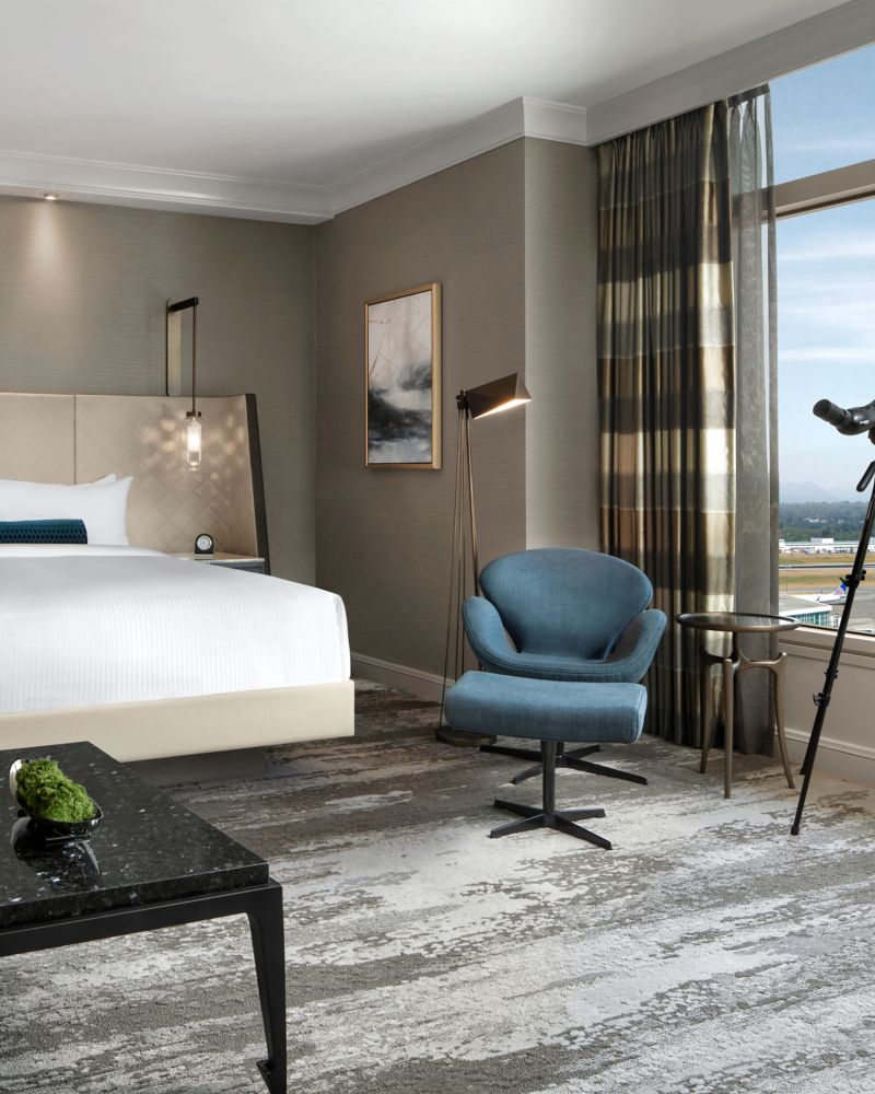 Chaque séjour au Fairmont Vancouver Airport offre une perspective à la fois sereine et spectaculaire. Les chambres orientées nord offrent une vue panoramique sur les montagnes North Shore, ainsi que les pistes d’atterrissage très fréquentées, créant ainsi une combinaison rare entre retraite paisible et mouvements captivants. Les chambres orientées sud offrent une vue sur l’activité des pistes et, par beau temps depuis les étages supérieurs, sur les couchers de soleil dorés et les Îles Gulf au loin.