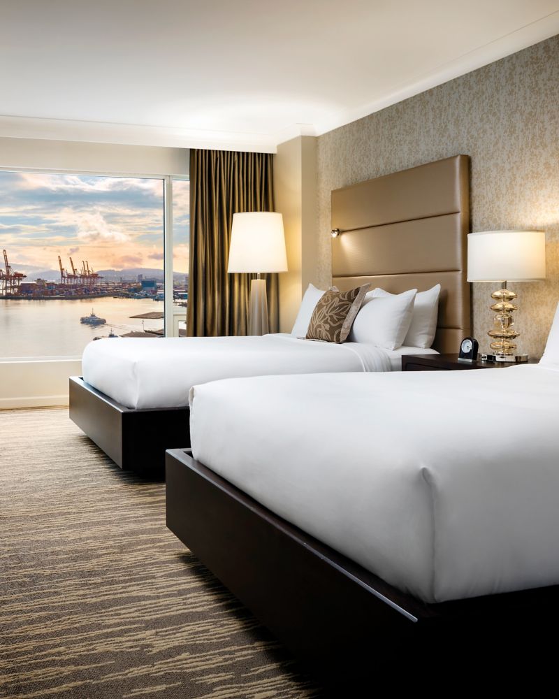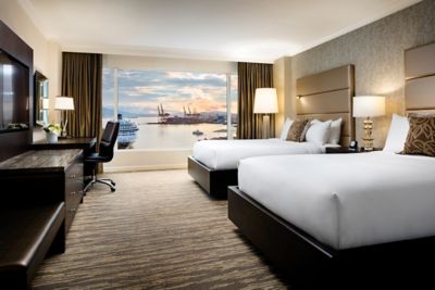 Chambre Fairmont Gold avec deux lits doubles et vue sur le port