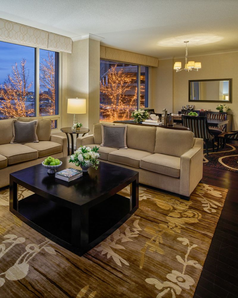 Notre deuxième plus grande suite offre l'option d'une ou deux chambres et dispose d'un wet-bar, d'une salle à manger pouvant accueillir six personnes, d'un salon spacieux et d'une terrasse privée avec accès à la piscine. Les clients bénéficient de l'accès au salon Fairmont Gold et à un patio donnant sur le port, d'un petit-déjeuner européen gratuit, de canapés en soirée et d'un comptoir d’arrivée privé.