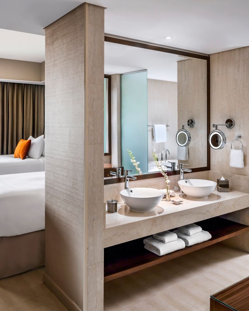 42 sq.m., balcony, plush bedding, rain shower, bath tub, full Arabian Gulf View.