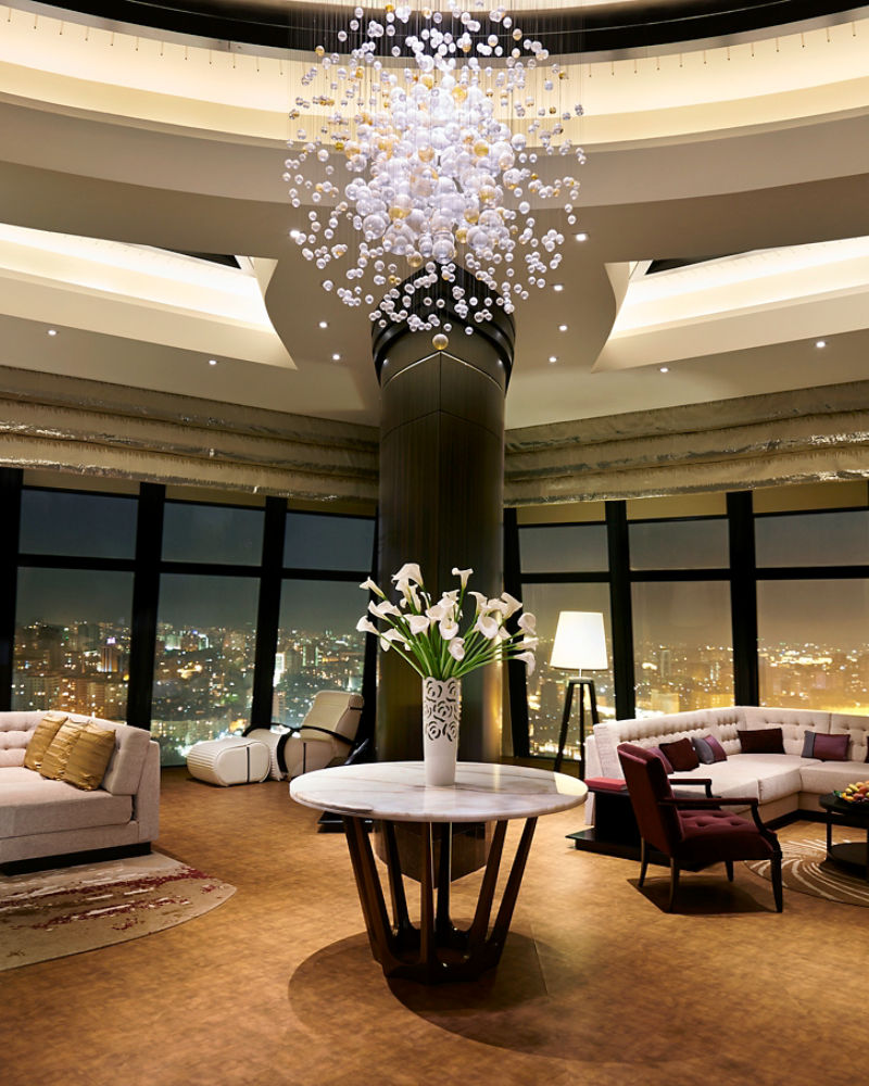 On the 22nd and 28th floor, the Caspian Sea Suite offers the best, breath-taking views across the largest enclosed sea in the world, from floor to ceiling, double floor (high ceiling) windows at the tip of the Flame Tower.