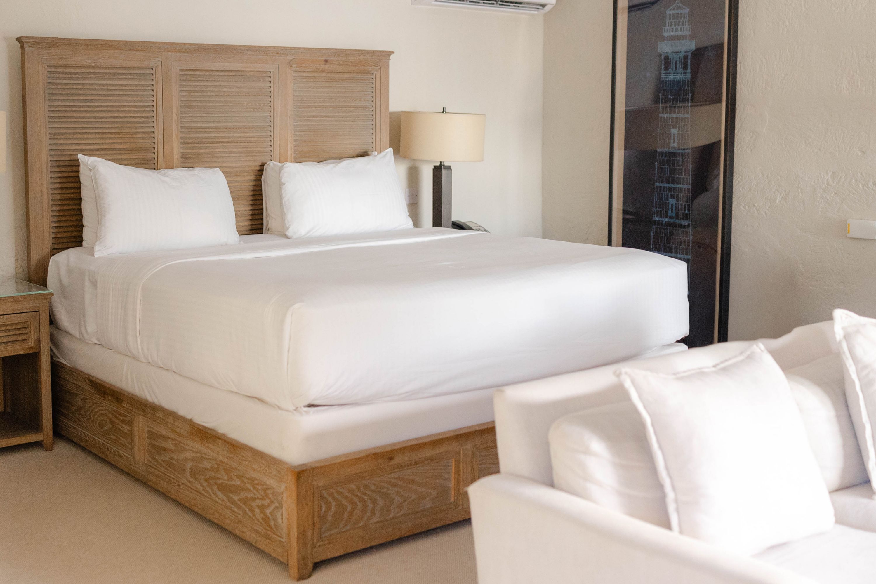 Awake to the soothing sound of waves gently lapping the shore from the comfort of your pillow-top king bed. Located on the second floor, our Luxury Oceanfront Rooms provide a stunning view from a spacious glass-fronted balcony. Elegantly furnished with sun lounger, and a dining table, this serene setting is ideal for sunset cocktails.