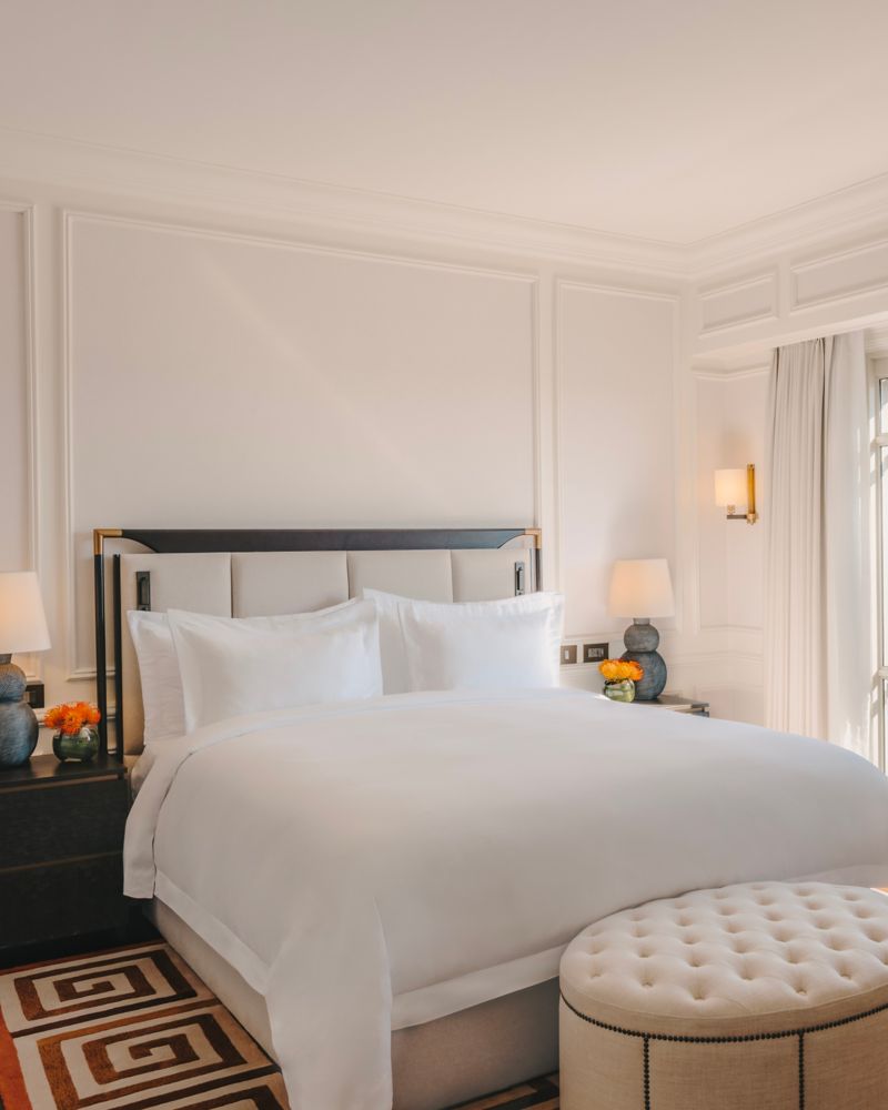 Exquisitely detailed suite with a balcony, separate lounge and dining area. It offers a sophisticated and memorable escape for solo travellers and couples alike.