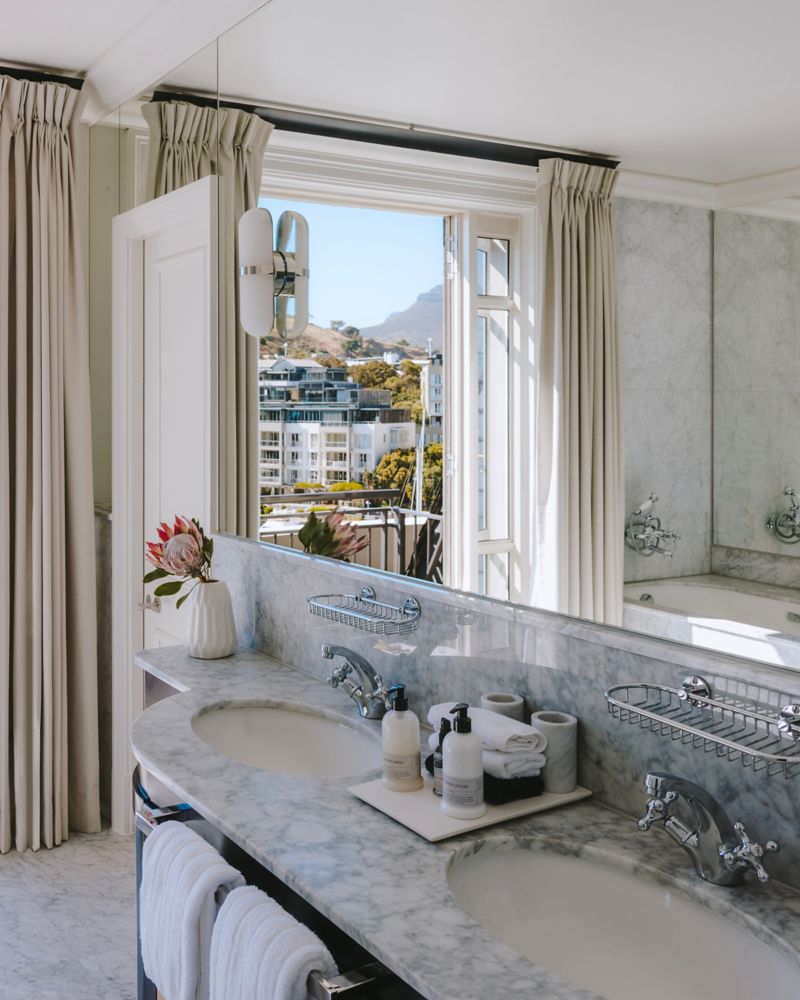 Breath-taking views of the iconic mountain and tranquil yacht marina, this room offers elegant furnishing and timeless décor. French doors with ample room space and dressing area. Interleading rooms and twin beds are available on request.