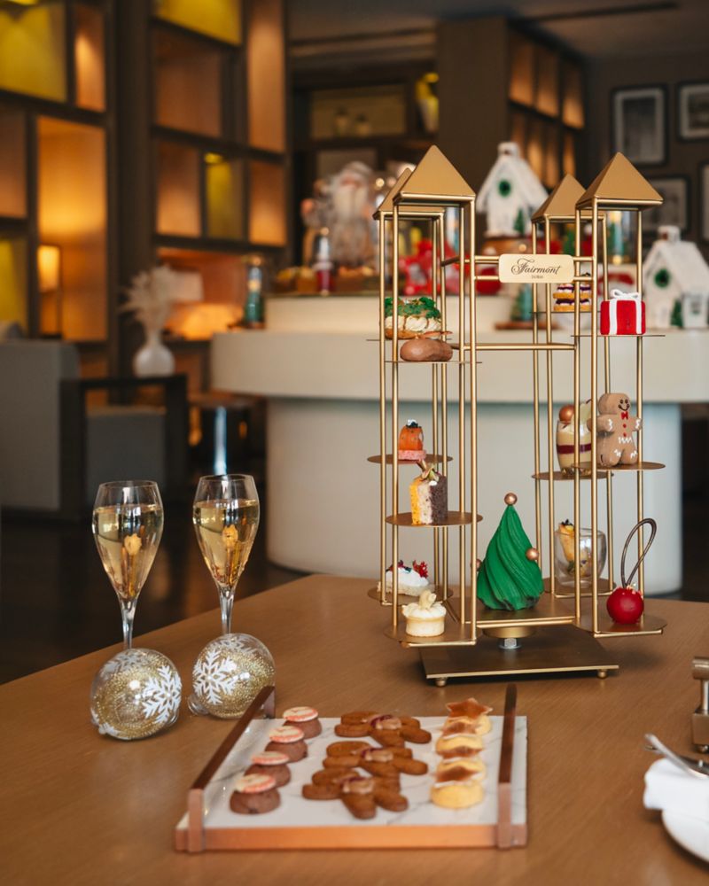 Celebrate the holidays in refined style with the Festive Afternoon Tea at Library Lounge, Fairmont Dubai. Indulge in a seasonal twist on our classic afternoon tea with an array of savoury bites, handcrafted pastries, freshly baked scones, and premium teas infused with festive flavours. The elegant Library Lounge provides the perfect setting for a Christmas afternoon in Dubai, whether meeting friends, enjoying a seasonal treat, or marking the holidays with loved ones.