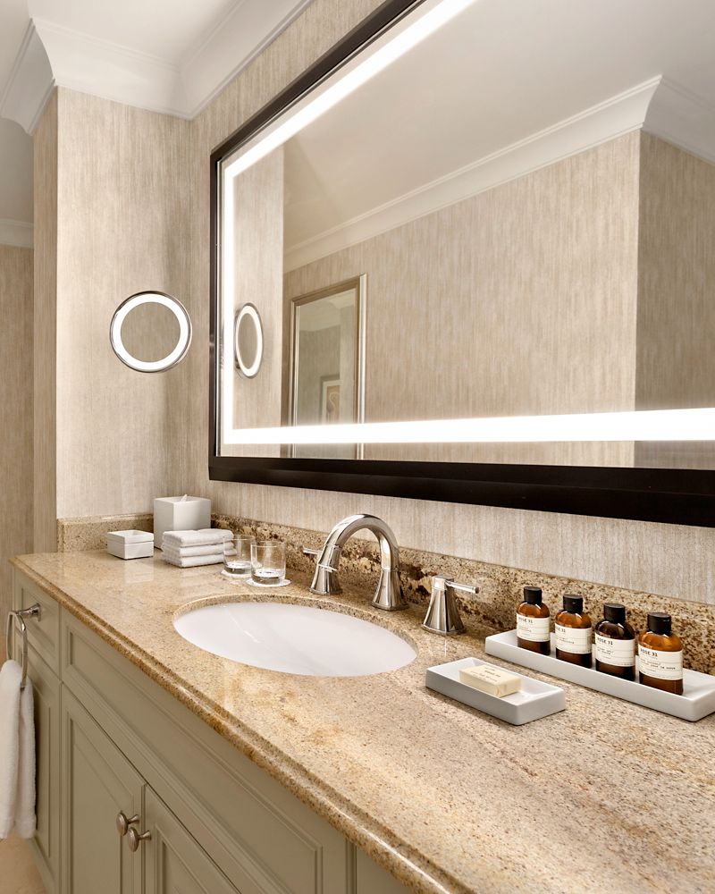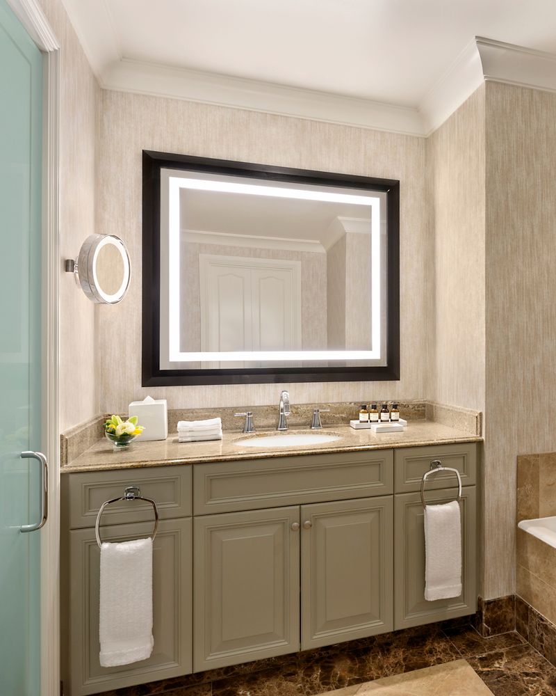 Spacious 445 ft² / 41 m² Guest Rooms Located in the Mount Temple Wing. Wheelchair Accessible. Grab Bars in Bathroom Area. Adjustable Make-Up Mirror, Height Adjusted Peep Hole, Clearance Under Bathroom Sink. Fire Strobe Light.