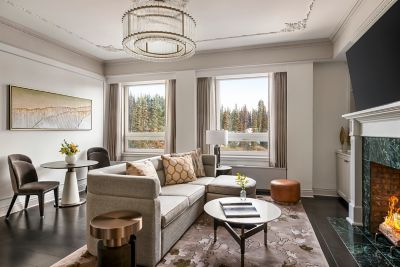 One Bedroom Suite with 1 King Bed. Spectacular Views of Lake Louise & Victoria Glacier. Living Room with Sofabed. Suite Includes Breakfast, Parking & Welcome Amenity. 700 ft² / 65 m².