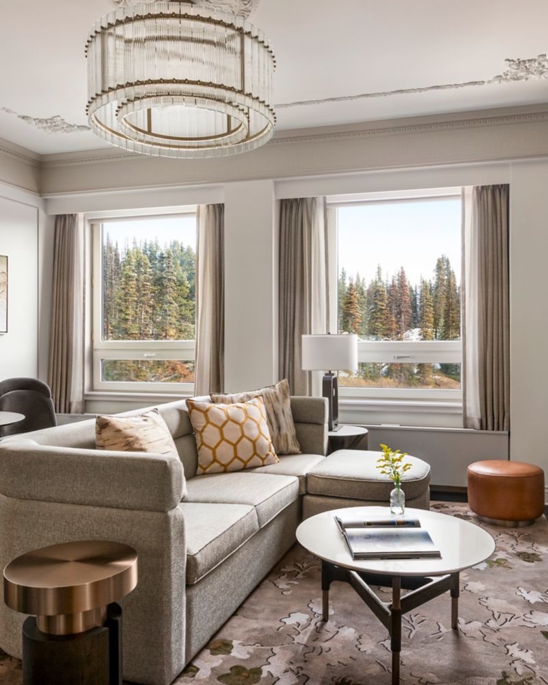 Signature Suite on Fairmont Gold with Dramatic Views of Lake Louise & Victoria Glacier. Floor to Ceiling Windows. Spacious Living Room. 1 King Bed, 1 1/2 Bathrooms. 750 ft² / 69 m².