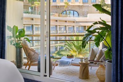 Suite with one bedroom, a living room offering a private terraces overlooking the hotel's private peaceful gardens or the historical Opera House and the Casino of Monte-Carlo. Connected TV, coffee machine and digital technologies available. 60 sqm.