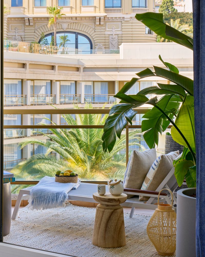 Inspired by Monaco's heritage with beige and blue color tones and elegant bathroom, this renovated room offers a large terrace overlooking the lush garden of the hotel. Connected TV, coffee machine and digital technologies available. 35sqm.