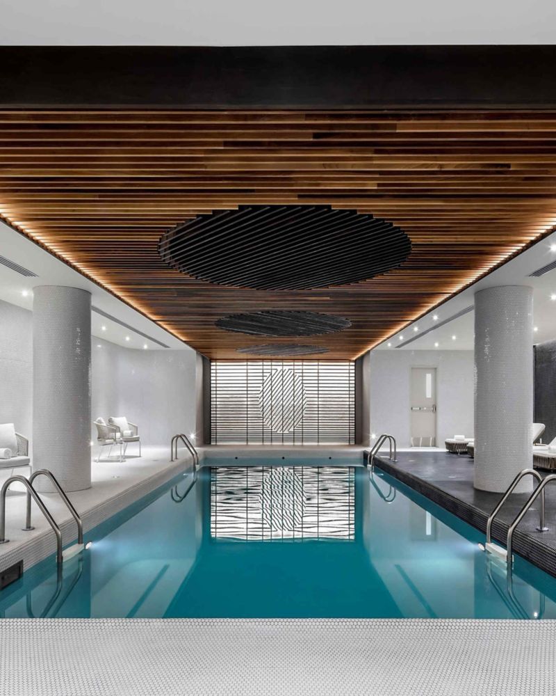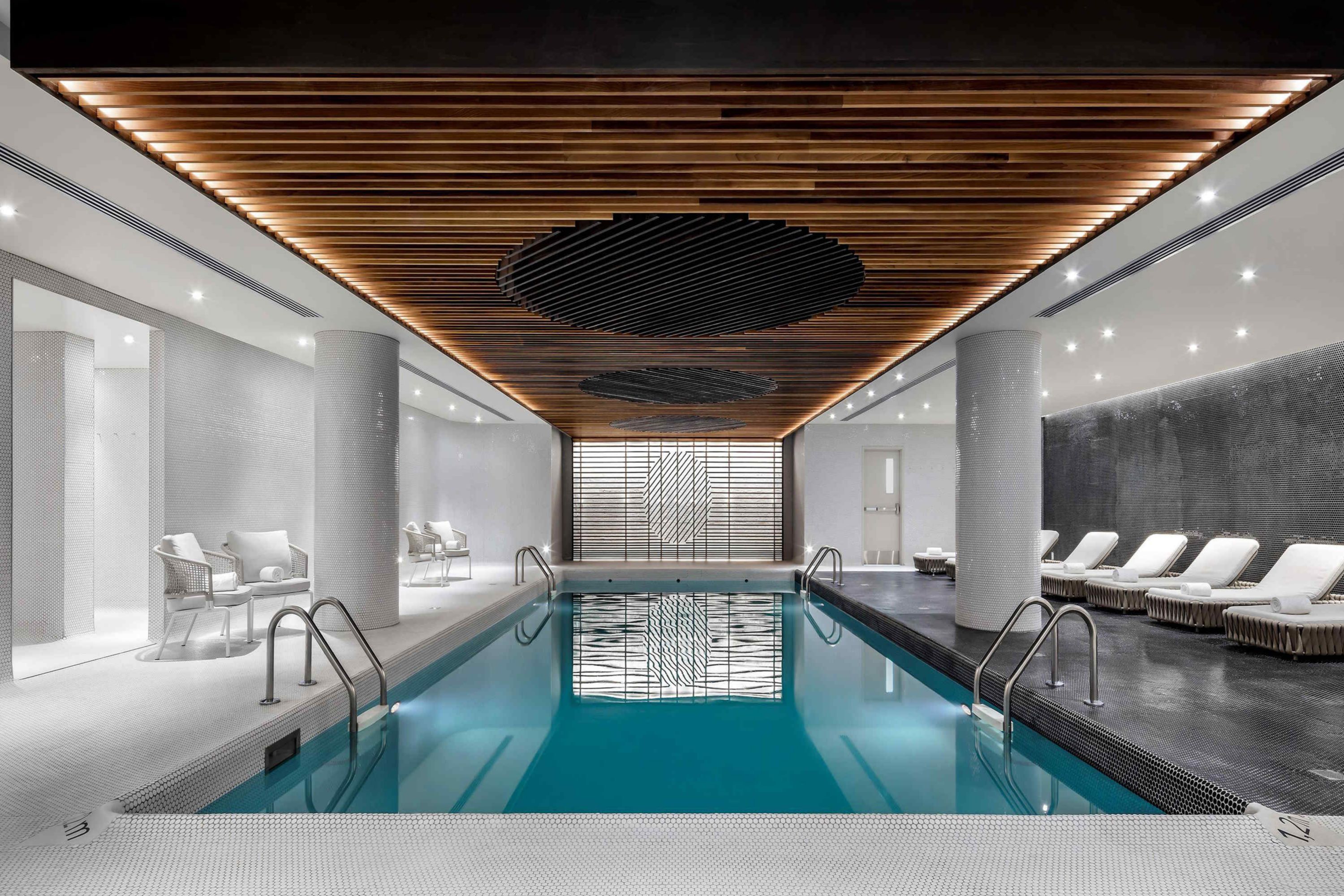 Take a break from the city buzz and unwind in our serene indoor pool, a peaceful retreat with a touch of mid-century charm.