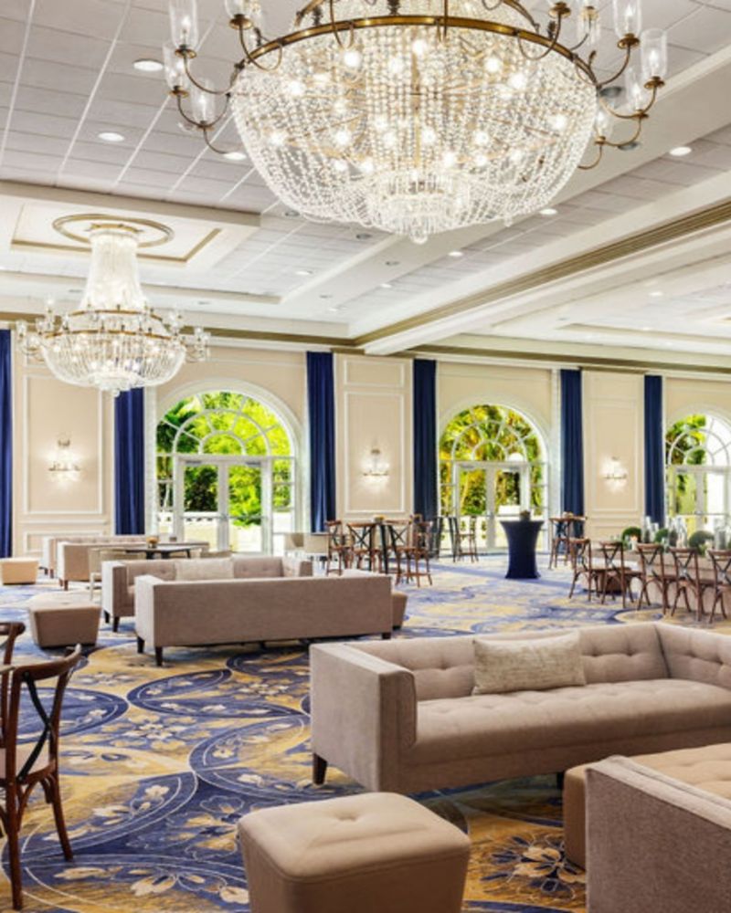 An ample boardroom that includes floor to ceiling windows and is ideal for large groups’ unique meetings.