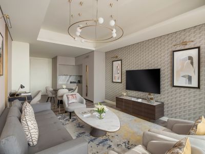Located on the highest floors, the 718 sqm Royal Penthouse features lavish interiors, 4 master bedrooms, a sumptuous living area, a home theater, 5 bathrooms, luxury office, fully equipped kitchen and maid room. It includes a Jacuzzi and private gym.