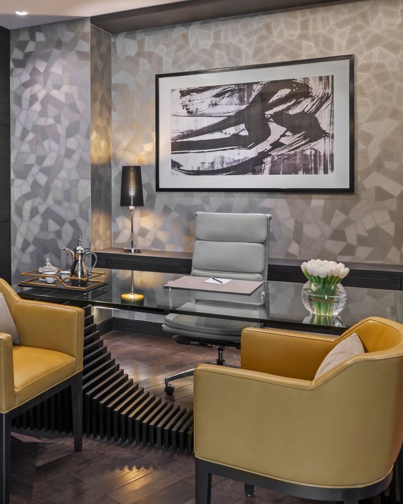 Business amenities, elegant space, separate spacious bedroom & living areas, luxurious bathroom w/ exquisite amenities, exclusive lounge access, 94 m² (1012 sq. ft.).