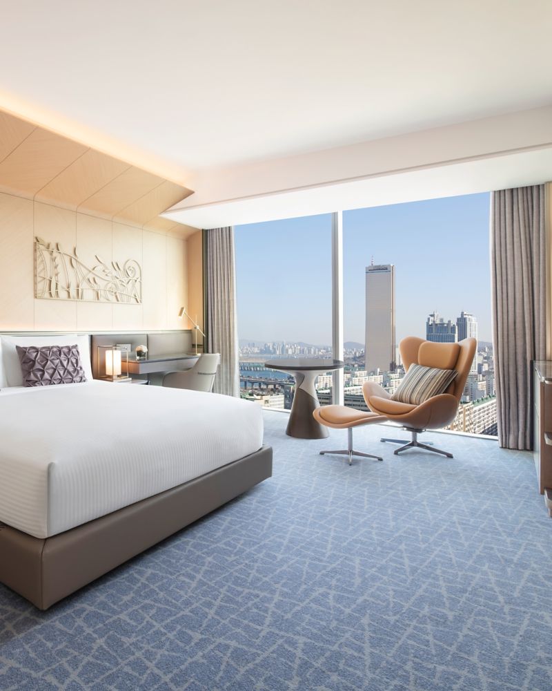 Our spacious guest rooms feature spectacular views of the center of Seoul, whether looking towards the stunning cityscape, Yeoi-do park, Han-River park or gorgeous Han-River.
