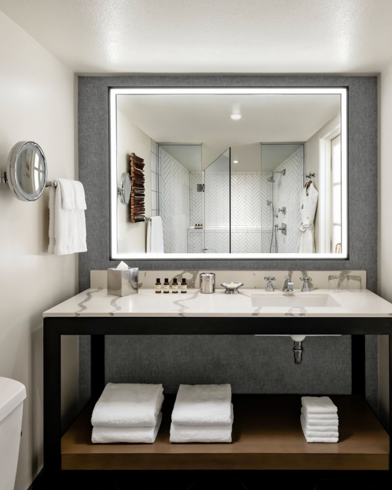 Larger rooms featuring two queen beds and a beautifully appointed bathroom with shower-tub combination. Approachable luxury highlighted with modern sophistication.