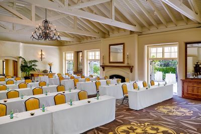 Featuring vaulted ceilings framed with floor-to-ceiling windows that overlook the manicured lawns and gardens of the resort, Sonoma Valley Room is our most charming indoor venue. A grand fireplace and large iron chandelier complete the space. Can connect to the adjacent Sonoma Valley Patio for cocktail receptions and al fresco meals.