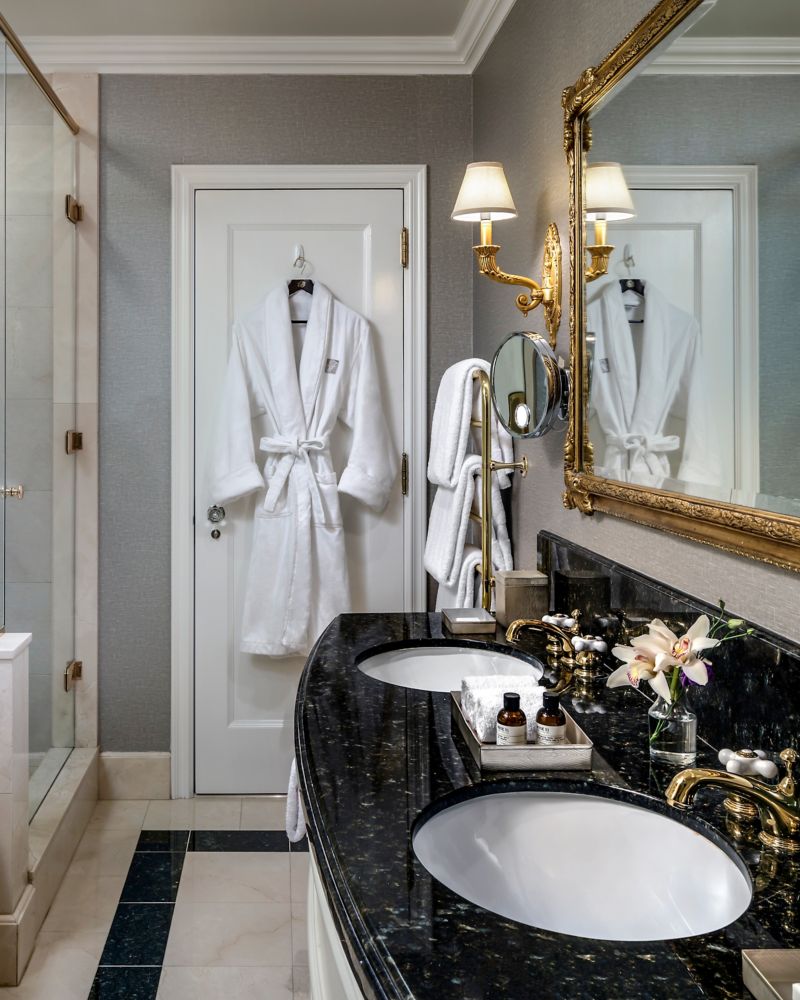Stylish and serene, this tranquil space has separate living room with french doors. Sleek bathrooms, salon-style lighting, rainfall shower. Up to 5 adults.
