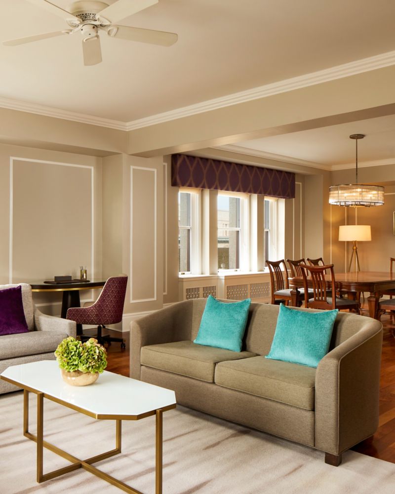 Located throughout the hotel, recommended for longer stays. Classic-meets-contemporary design.