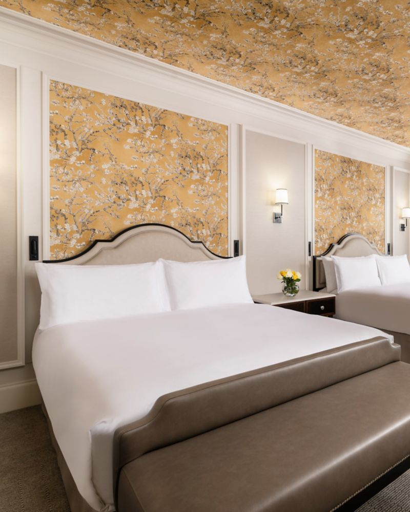 A calming oasis, consisting of two queen beds, and a modern bathroom with walk-in shower and bathtub.