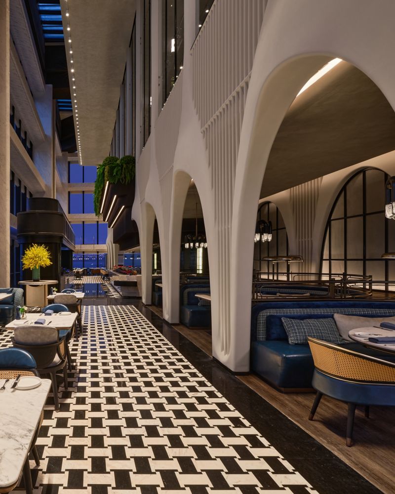 PLAZA Lobby Lounge is situated on the 1st floor, featuring 75 seats. It is designed with the essence of Southern Fujian architecture to create a vibrant social space. It offers a variety of signature beverages and a selection of bakeries and snacks.