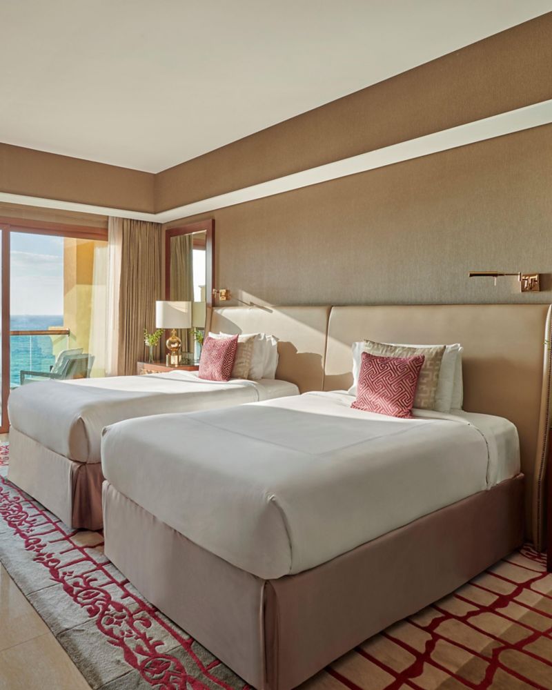 An abundance of space leads into a private outdoor balcony with glass railing and the most stunning Arabian Gulf views in the emirate. Located on higher floors, 6 to 14, expect a better view of the Gulf from a deluxe seaview double room.