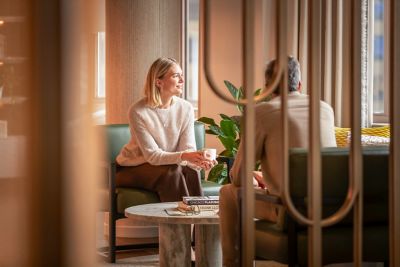 套房,设有独立起居室和卧室。可欣赏城市景观。配备独立淋浴和浴缸,带有舒适的洗漱区。宽敞的客房包括会客区和办公区。