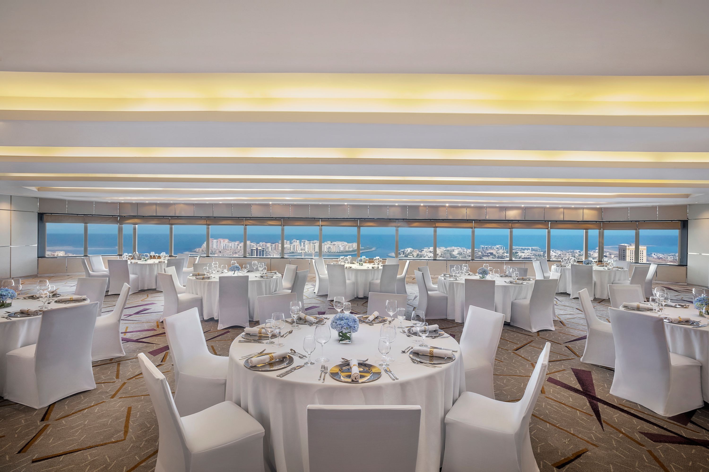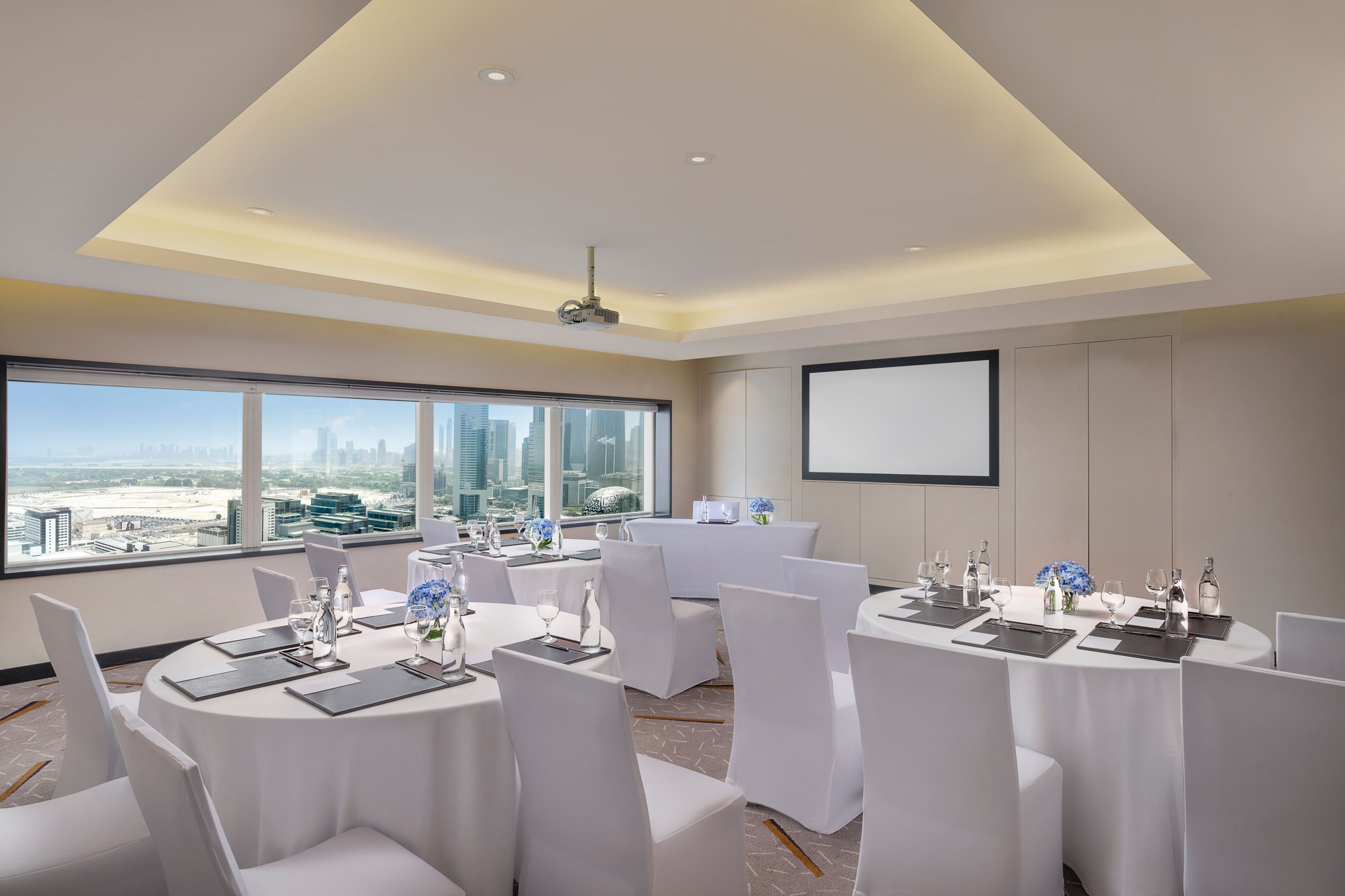 Palm Six offers stunning views of Dubai's Sheikh Zayed Road with natural light by day and vibrant city lights by night. Perfect for events like receptions and intimate gatherings of up to 40 people, it overlooks the Museum of the Future and includes a separate pre-function area for coffee breaks and networking.