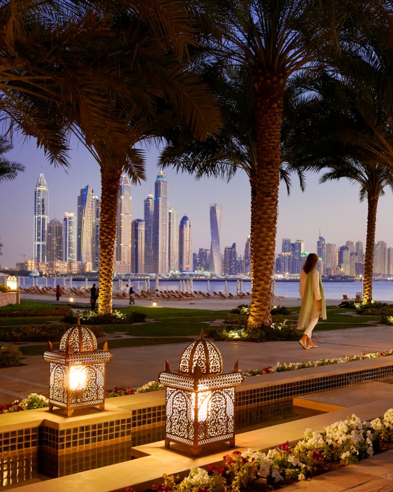 这间宽敞的家庭套房采用阿拉伯风格,配备 3 间卧室、步入式衣帽间、大理石浴室、餐厅和休闲区、小厨房,从私人阳台即可欣赏一览无余的码头天际线和棕榈岛全景。