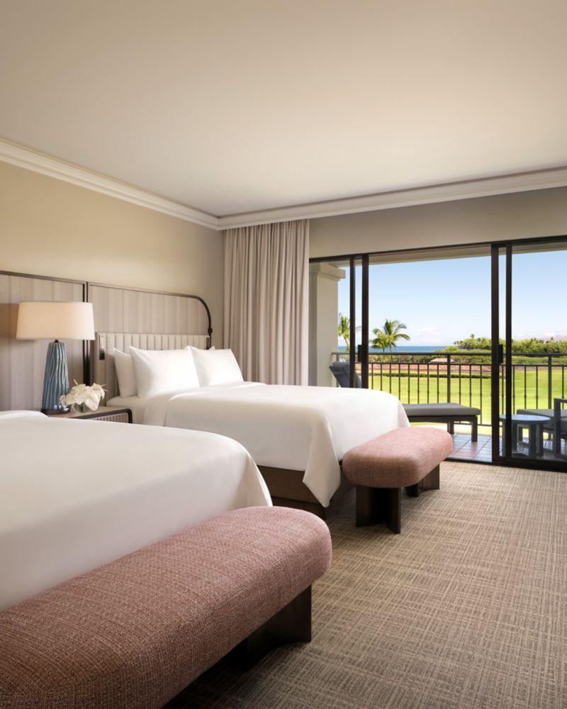 从客房可以欣赏到一定角度的海景和热带花园景观(或高尔夫球场景观),带来双重的美妙享受。客房配备雅致的夏威夷家具和各种设施,如无线网络、冰箱、内置媒体中心的 55 英寸高清平板电视和 iPod 适配器。