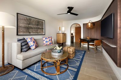 您可以从我们的尊享套房内的环绕式私人阳台上欣赏全景海景。宽敞的单卧室套房设有大起居区,让人不禁联想到蕴含毛伊岛丰富遗产的故事。豪华浴室配备加深浴缸、步入式淋浴间和双盥洗台。