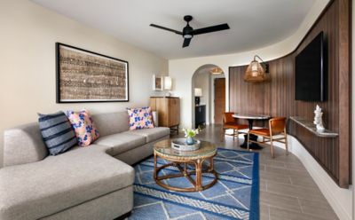 您可以从我们的尊享套房内的环绕式私人阳台上欣赏全景海景。宽敞的单卧室套房设有大起居区,让人不禁联想到蕴含毛伊岛丰富遗产的故事。豪华浴室配备加深浴缸、步入式淋浴间和双盥洗台。