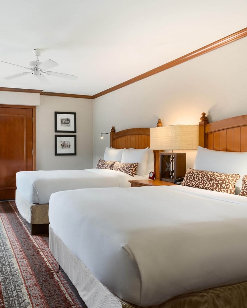 Fairmont Rooms are situated throughout the property and boast newly renovated bathrooms. These inviting accommodations provide a cozy cabin ambiance, with many featuring private outdoor patios or balconies. Ideal for individuals, couples, or small families, these rooms offer a perfect blend of comfort and charm.