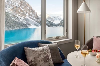 私人休闲区,提供包含早餐和点心的礼宾服务。双卧室套房,卧室分别配备 1 张特大床和 2 张大床。可欣赏路易斯湖和维多利亚冰川的壮美景观。面积 85 平方米/915 平方英尺。